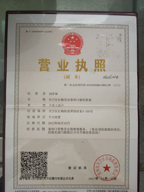 天宁区红梅夯实卷帘门窗经营部是重要的常州卷帘门厂,专业生产水晶卷帘门、电动卷帘门、型材卷帘门、防火卷帘门、保温卷帘门、防爆卷帘、抗风卷帘门、平卧钢质防火卷帘门、侧向钢质防火卷帘门、双轨无机特级防火卷帘门带卷帘式安全门防火卷帘门(门中门)、快速卷帘门;防火门、隔音门、工业提升门、保温门、工业滑升门等十几种产品。天宁区红梅夯实卷帘门窗经营部 是常州地区水晶卷帘门、电动卷帘门、型材卷帘门、型材卷帘门主要生产厂,是集卷帘门开发、设计、产生、销售服务为一体的现代化企业。
